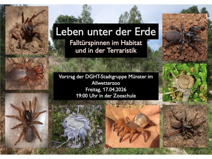 Leben unter der Erde – Falltürspinnen im Habitat und in der Terraristik – Vortrag am 17.04.2026 von Carl Bolling, DGHT Stadtgruppe Münster